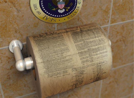 The Executive Branch is in a no-holds-barred grab for antichrist-like powers, and President Obama’s only question regarding the Constitution is whether it comes it 1-ply or 2-ply,U.S. Constitution Toilet Paper so contemptuous is he of that great document. The Legislative Branch is constantly creating more government while at the same time ceding national sovereignty to foreign entities and ceding its authority to the Executive Branch. And, sadly, the Judicial Branch now rewrites the Constitution at will.